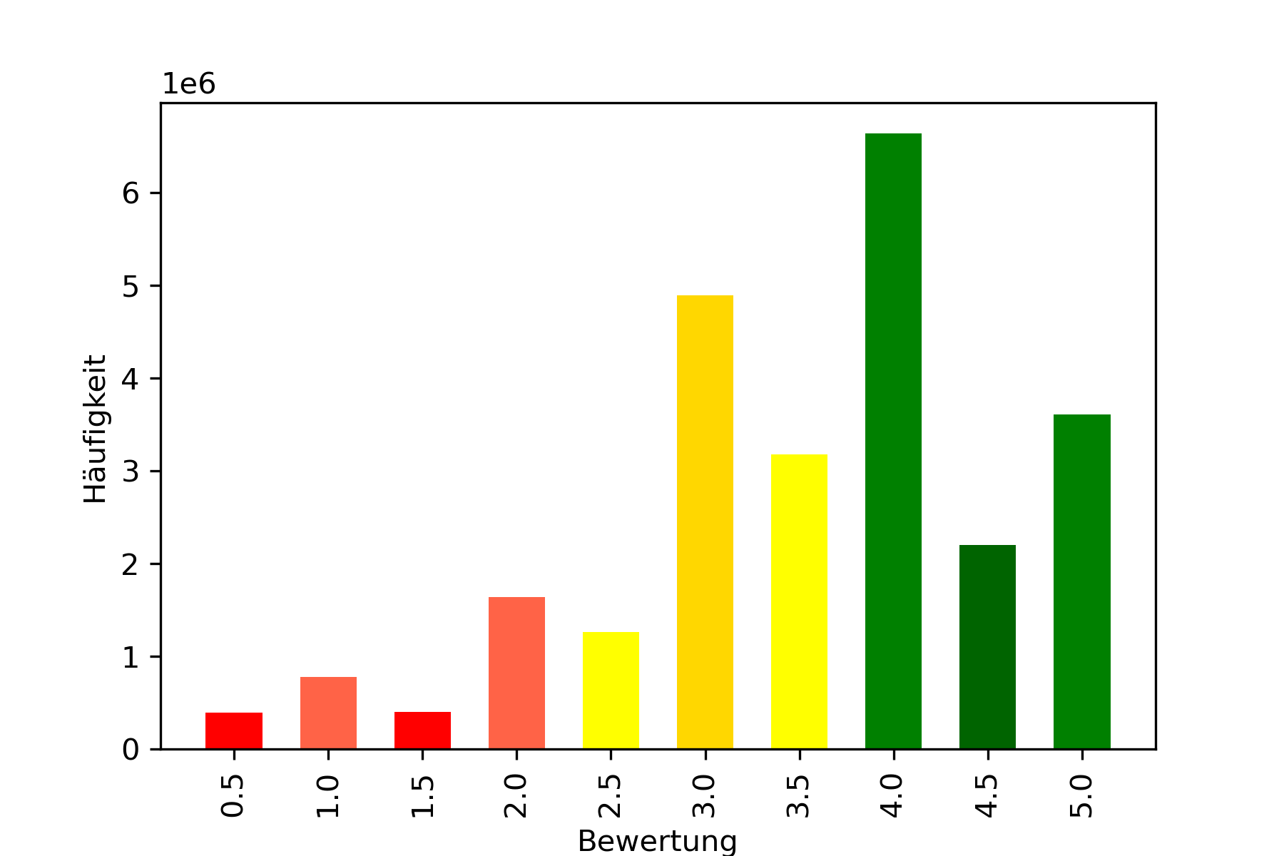 - Erstelle einen Plot, der die Häufigkeiten der Bewertungen eines einzelnen Nutzers darstellt. Verwende dafür den Code im Notebook.