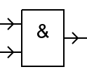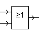 Das Schaltnetz enthält zwei Bausteine mit je zwei Eingaben und einer Ausgabe: