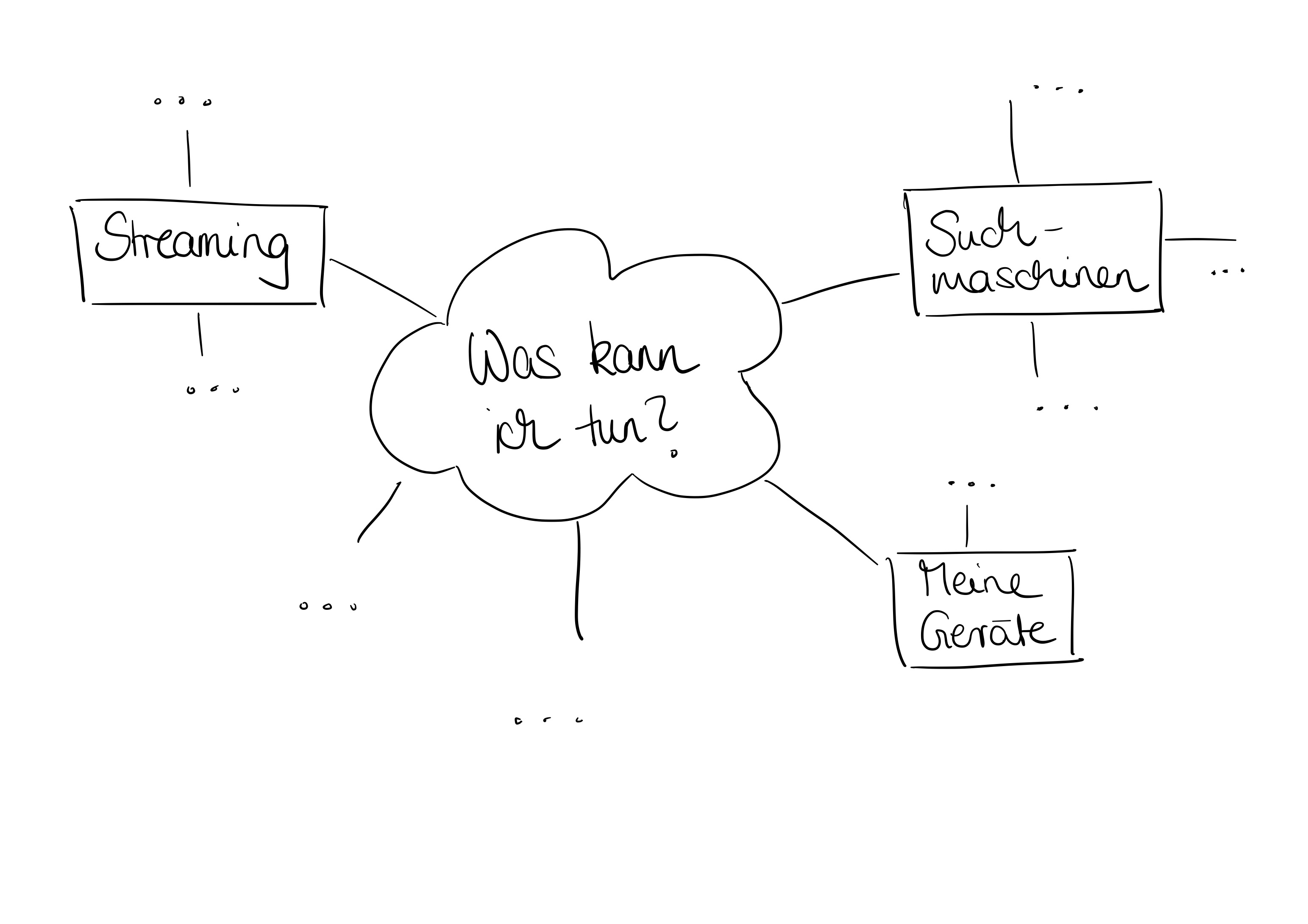 Erstellt eine MindMap mit Tipps und Hinweisen, wie man selbst nachhaltiger im Internet und mit mobilen Geräten unterwegs sein kann.