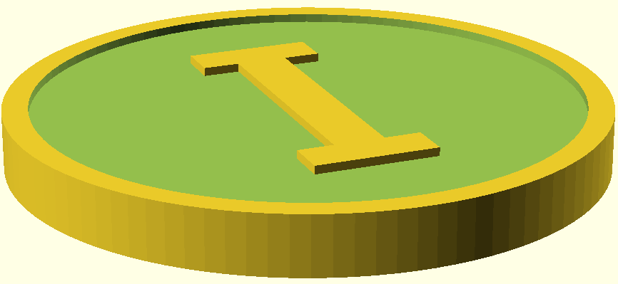 translate([0,0,1.5]) linear_extrude(1) text(text="I", font = "Rockwell:style=Normal", size=14, halign="center", valign="center");