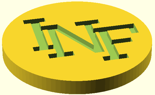 translate([0,0,0]) linear_extrude(2.33)und vergleiche die Vorschau mit der gerenderten Darstellung - wie lässt sich das erklären? (Antwort) Der Buchstabe hat die exakt gleiche Höhe wie der Zylinder. Wenn du ihn minimal höher machst als den Zylinder und minimal nach unten versetzt entspricht die Vorschau der gerenderten Darstellung, weil der Zylinder komplett "durchbohrt" wurde. - Lass dir nur die Zeile 3 anzeigen.