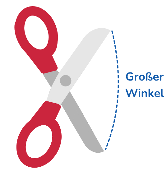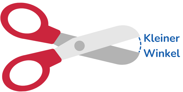 Wenn sich zwei Linien kreuzen, entsteht eine Fläche zwischen ihnen. Der Winkel gibt an, wie weit die beiden Linien auseinander gehen. Stell dir zum Beispiel eine Schere vor. Wenn sie nur ein bisschen geöffnet ist, ist der Winkel sehr klein. Je weiter du die Schere öffnest, desto größer ist der Winkel zwischen den beiden Scherenblätter.