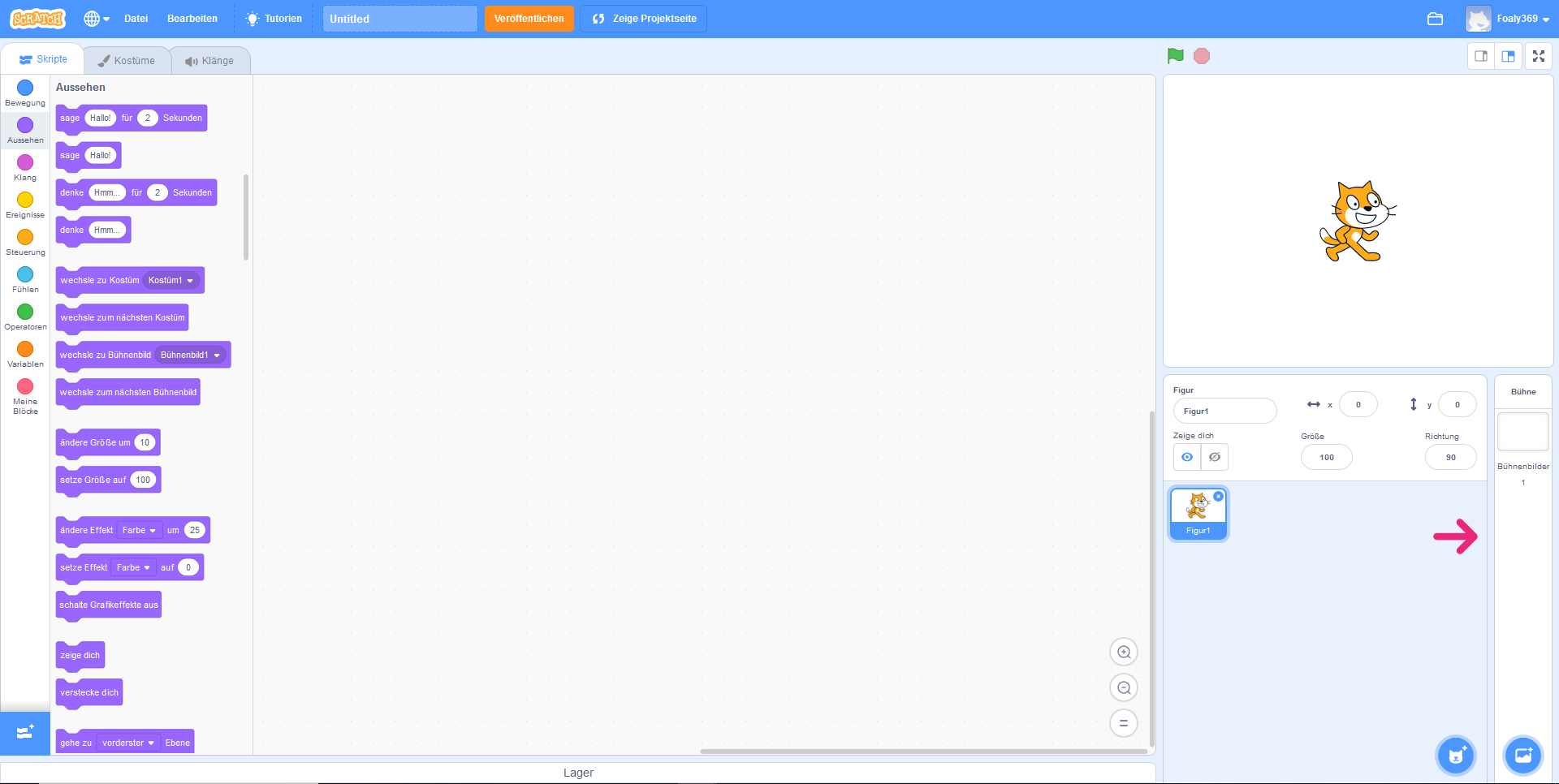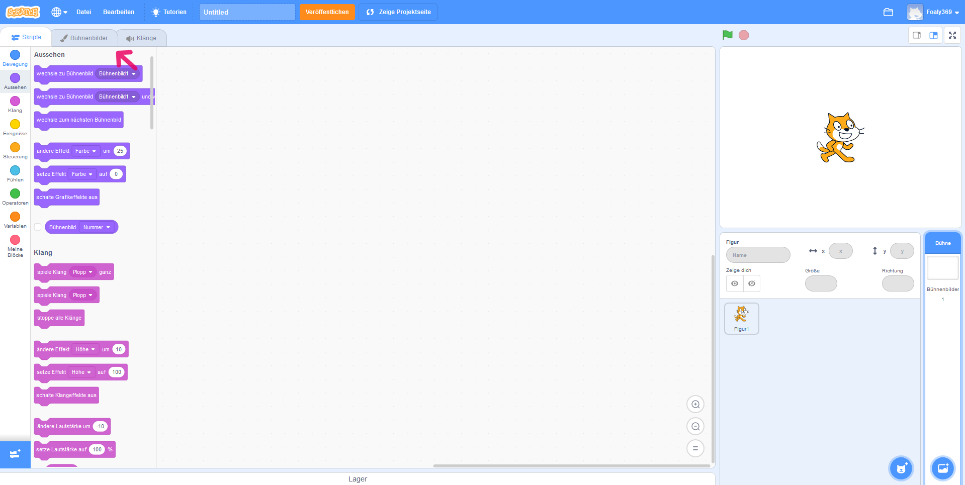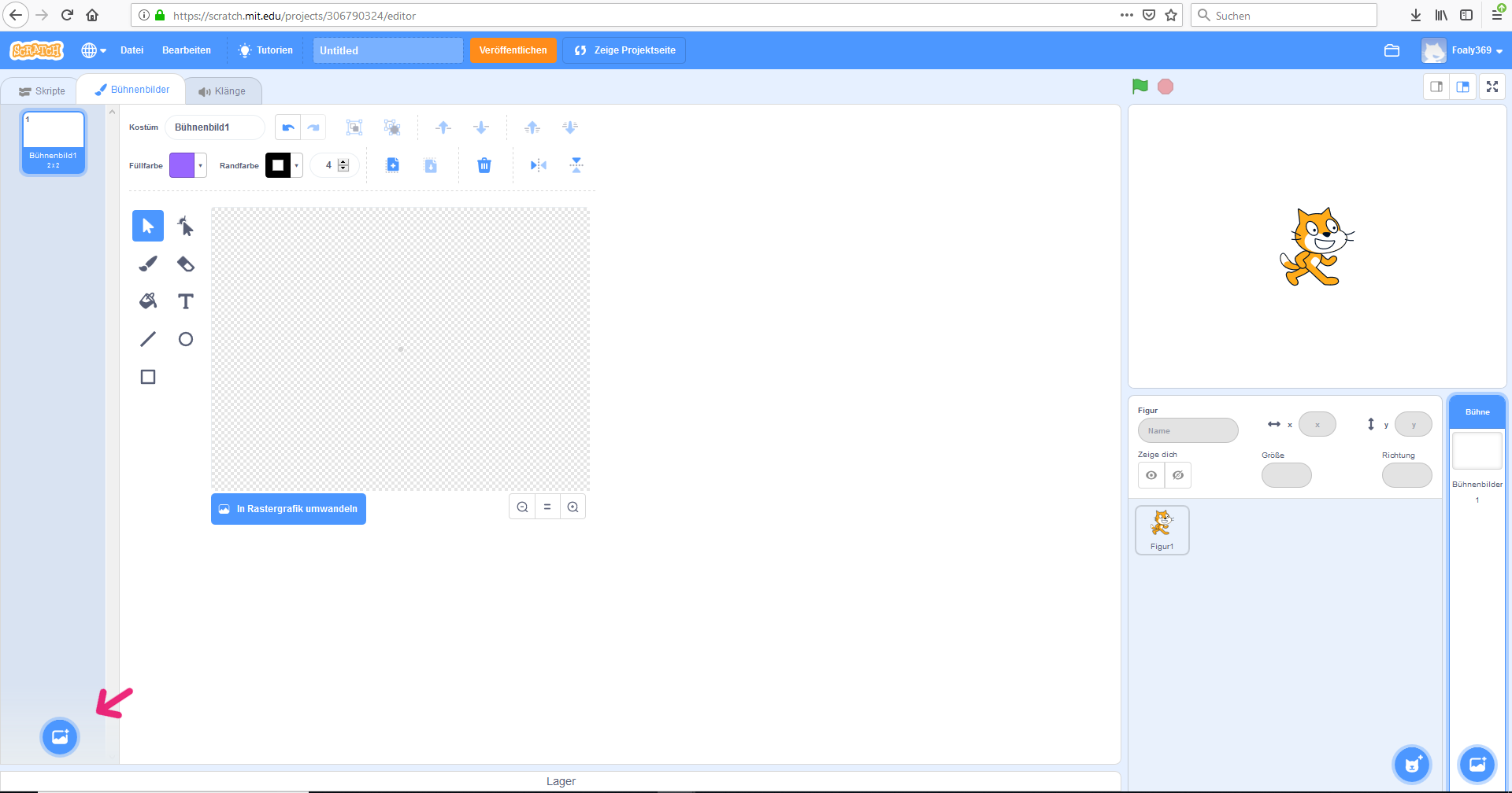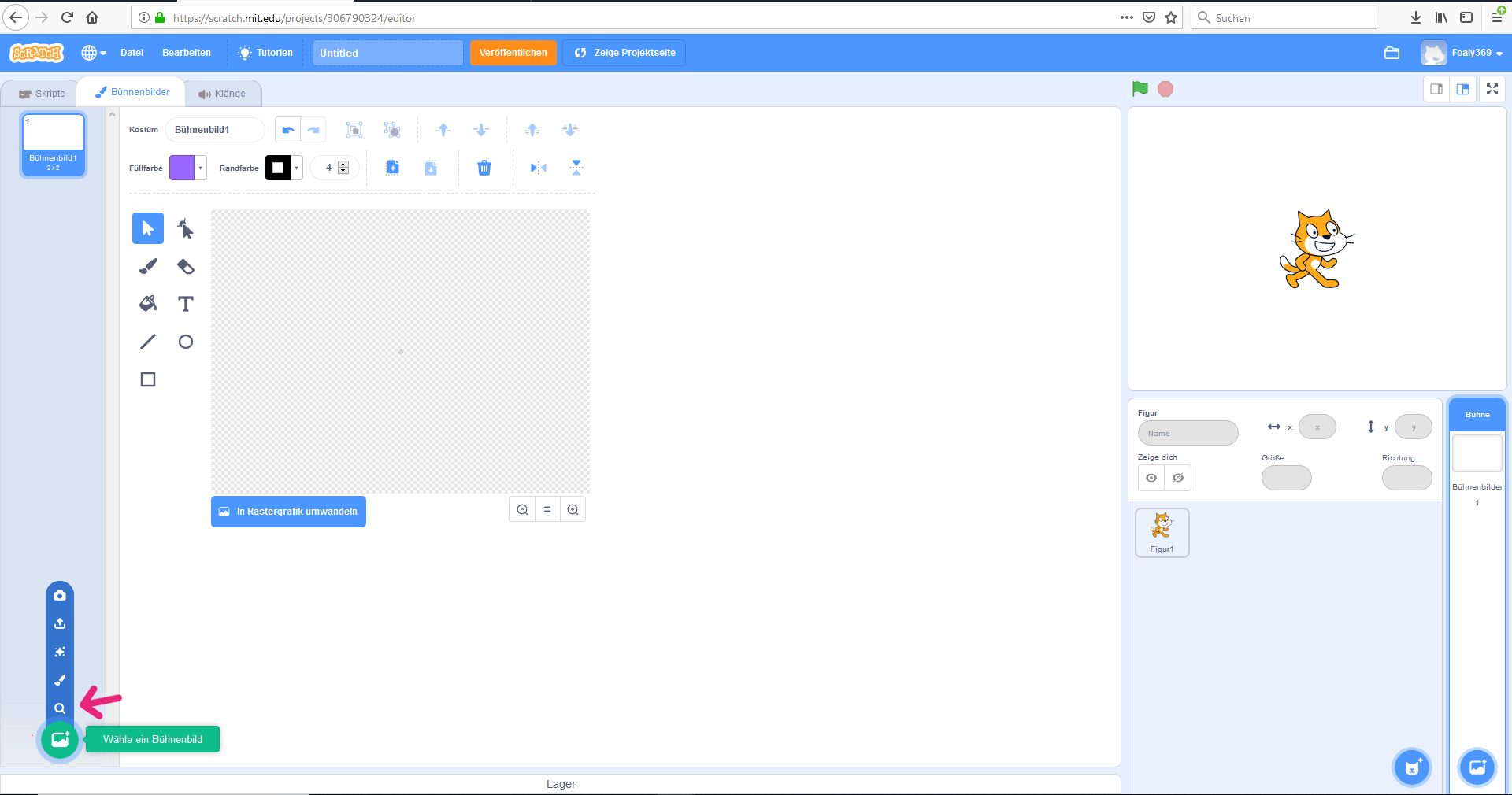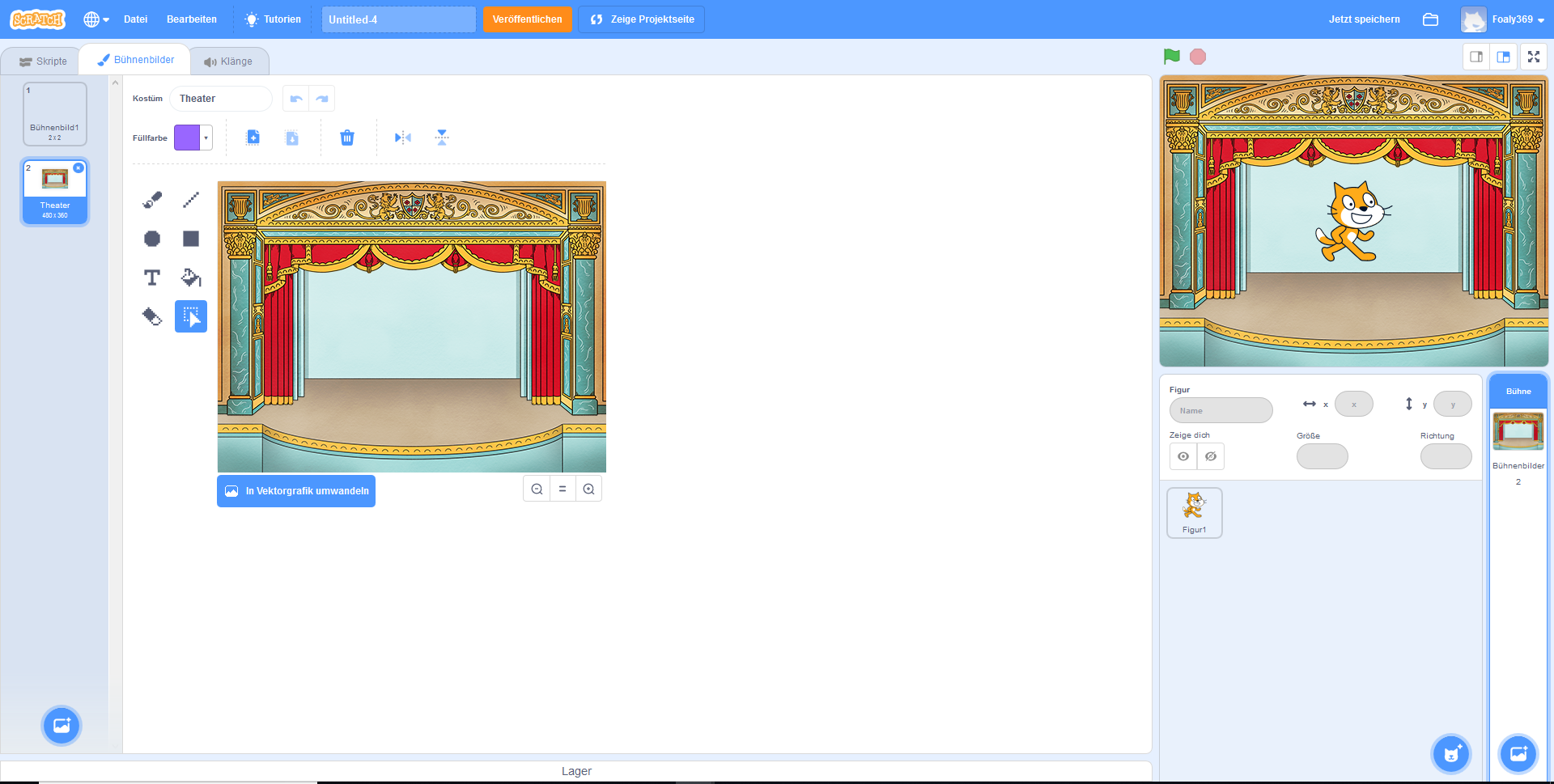 Du könntest jetzt ein eigenes Bild zeichnen. Es gibt aber auch schon viele Bühnenbilder zur Auswahl. Klicke auf das Bild-Symbol.