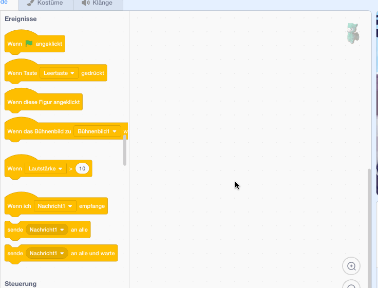 Für die folgenden Aufgaben benötigst du Befehle aus den Kategorien Ereignisse, Bewegung und Aussehen.
