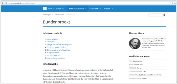 Es ist z. B. nicht davon auszugehen, dass die Seite zu den Buddenbrooks falsche Informationen liefert.
