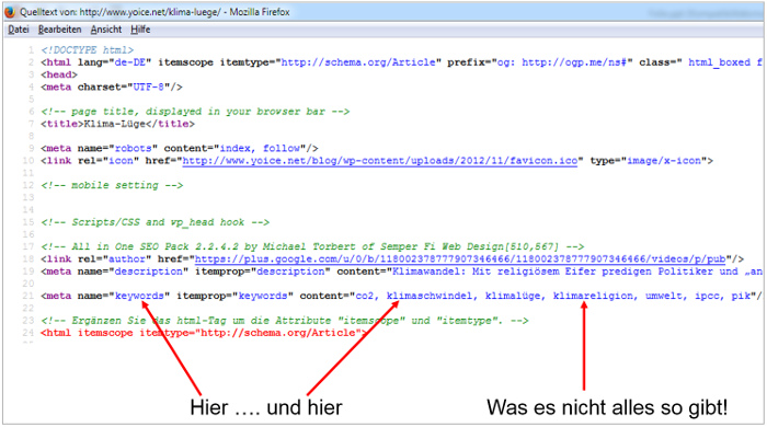 Noch eine Möglichkeit: Suchbegriffe aus dem HTML-Quellcode