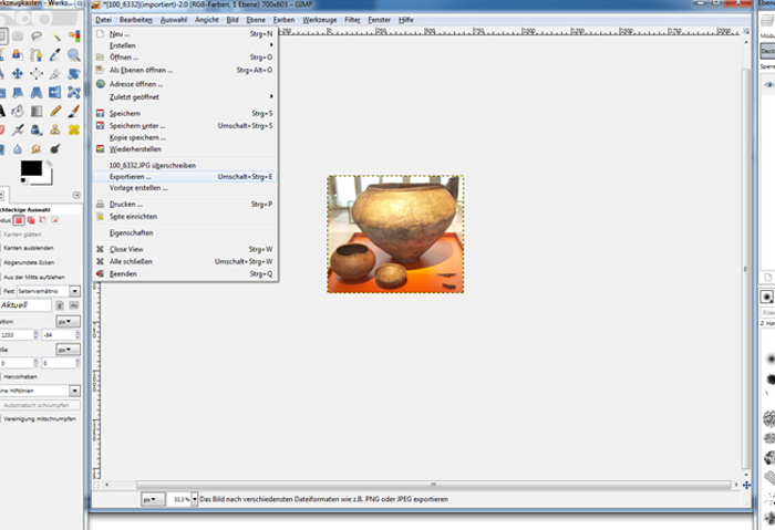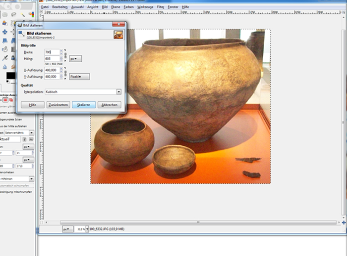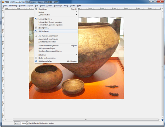 Frau Marchant kennt sich gut mit der Bildbearbeitung aus und sie ist der Meinung, dass es sinnvoll ist, Loredana grundlegende Arbeitsschritte mit Gimp vorzuführen. Loredana macht von allen wichtigen Schritten Screenshots.