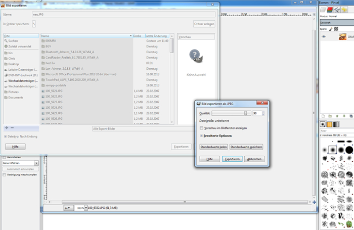7. Qualität angeben (hier muss man experimentieren und verschiedene Ergebnisse vergleichen)
