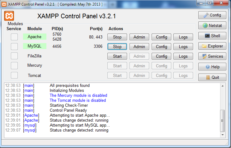 Bild 1: Sowohl der Webserver als auch die Datenbank funktionieren.