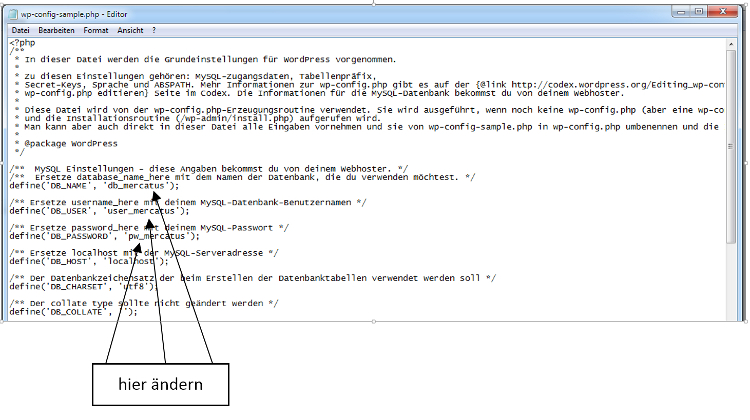 Diese Datei muss hinsichtlich einiger Einträge (Datenbankname usw.) angepasst werden.