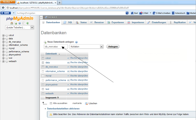 Bild 3: Datenbank anlegen (Datenbankname: s. oben)