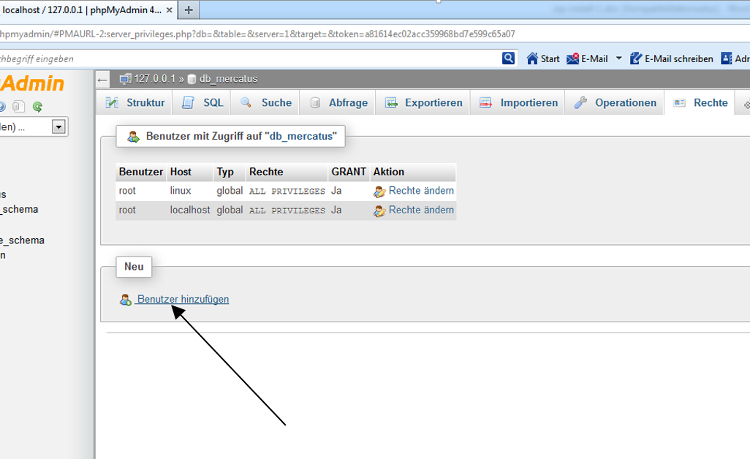 Nun muss die Datenbank erstellt werden. Hierzu wird im Browser der localhost aufgerufen, der