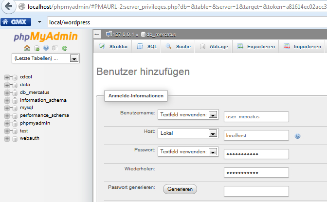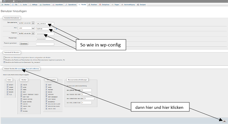 Hinweis: Der hier eingegeben User-Name hat nichts mit dem User-Namen der MySQL - Datenbank zu tun, hier geht es jetzt