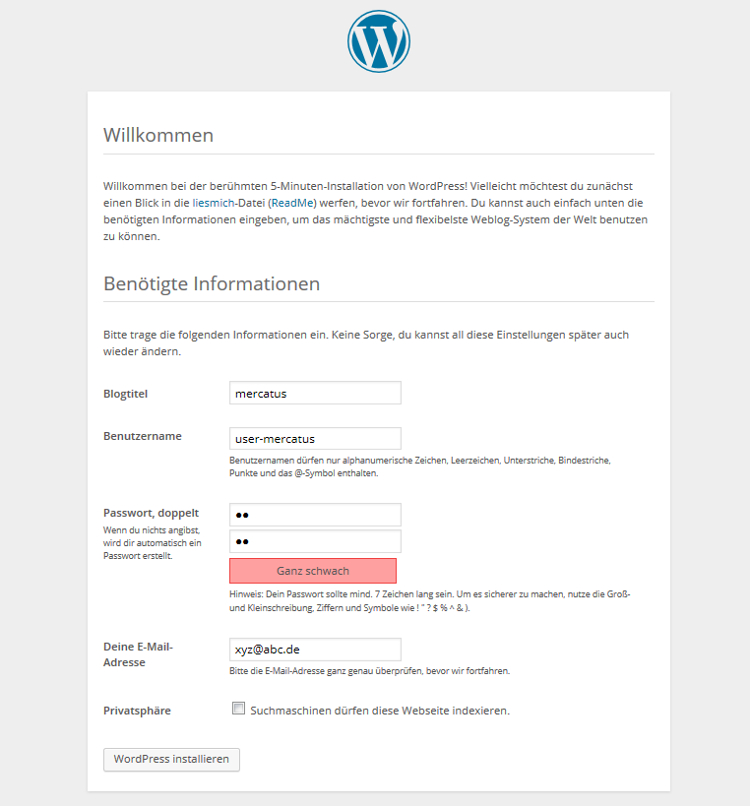 Bild 8: Jetzt http://localhost/wordpress/wp-admin/install.php