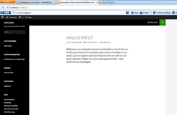 aufrufen, es reicht hier auch: http://localhost/wordpress