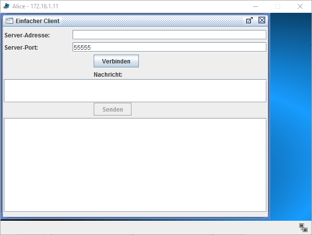 Hast du sowohl die Server-Adresse als auch den Server-Port eingegeben, kannst du mit Hilfe des „Verbinden“-Knopfs die Verbindung starten. Im unteren Ausgabebereich des Programms solltest du nun „Verbindung hergestellt“ sowie die Willkommensnachricht des Servers sehen.