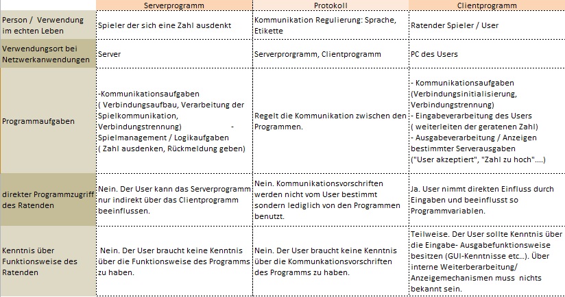 Wie du gesehen hast, besteht die Netzwerkanwendung aus mehreren Komponenten. Kannst du jeder Komponente eine Aufgabe zuordnen? Fülle dazu folgende Tabelle aus: