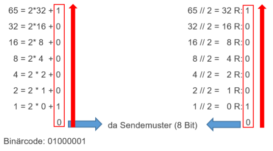 Sender: Buchstabe in einen Binärcode umwandeln