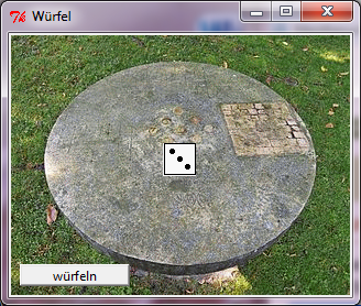 Bilder machen grafische Benutzeroberflächen attraktiver. Im Folgenden wird gezeigt, wie man Bilder in eine GUI einbindet. Wir betrachten als einfaches Beispiel eine GUI zum Würfeln.