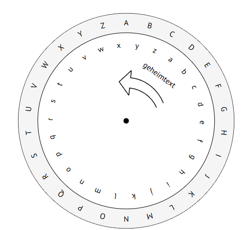 Die Caesar-Verschlüsselung ist ein symmetrisches Verschlüsselungsverfahren, bei dem jeder Buchstabe im Klartext durch einen anderen Buchstaben ersetzt wird, der im Alphabet um eine bestimmte Anzahl an Positionen verschoben wurde, diese Anzahl nennt man Schlüssel.