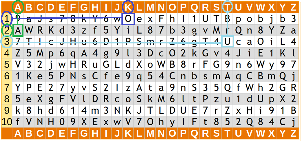 Um dein Passwort noch einfacher merkbar zu machen und schwerer zu knacken, kann man eine Passwortkarte verwenden.